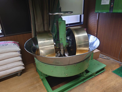 調合された原料を攪拌し練り上げる機械です。産業機械大好きな私ですが、見学者がもう一組いらしたことや工房内が非常に静かな空間だったこともあり細部の質問はやめておきました。